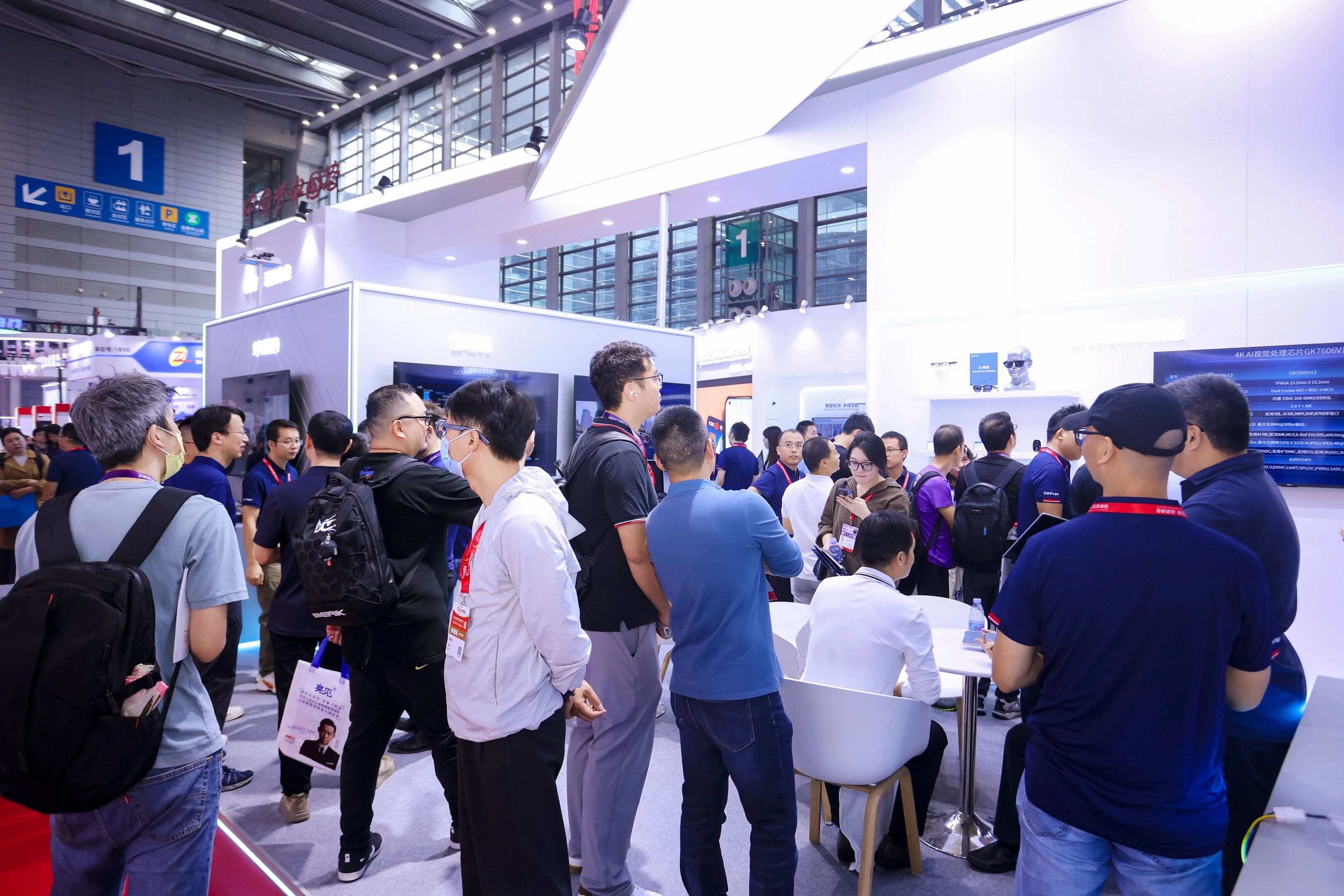 在多目拼接演示区,基于GK7606V1实现双目4K拼接,可视角度接近180度,画面中央几乎看不到拼接缝隙;同时边缘区域无明显畸变,展现了太阳集团官网拼接算法的成熟度。